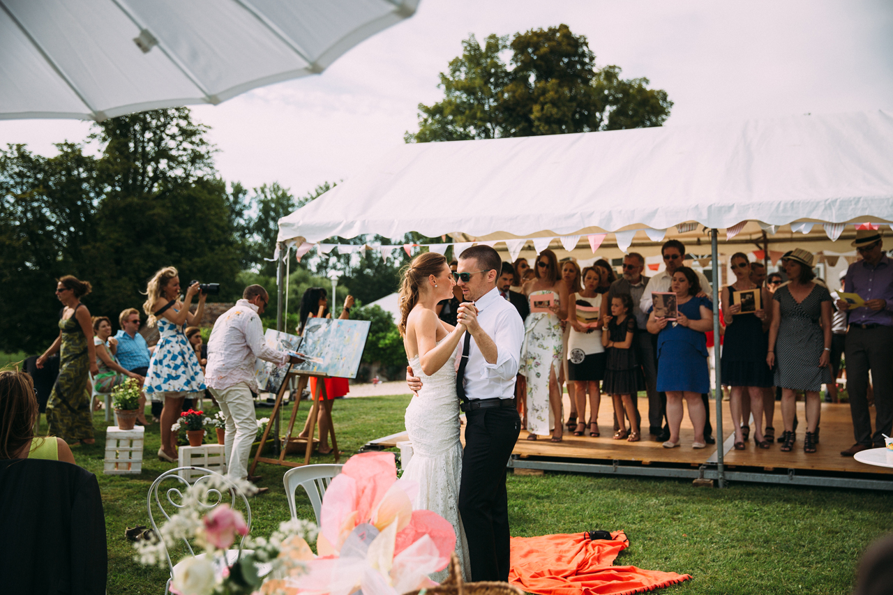 Tout était réuni pour que cette journée soit inoubliable ! Une jolie cérémonie champêtre, une après midi guinguette dirigée par les proches de Gilles, et le soir cochon grillé pour poursuivre cette belle journée sous les étoiles !